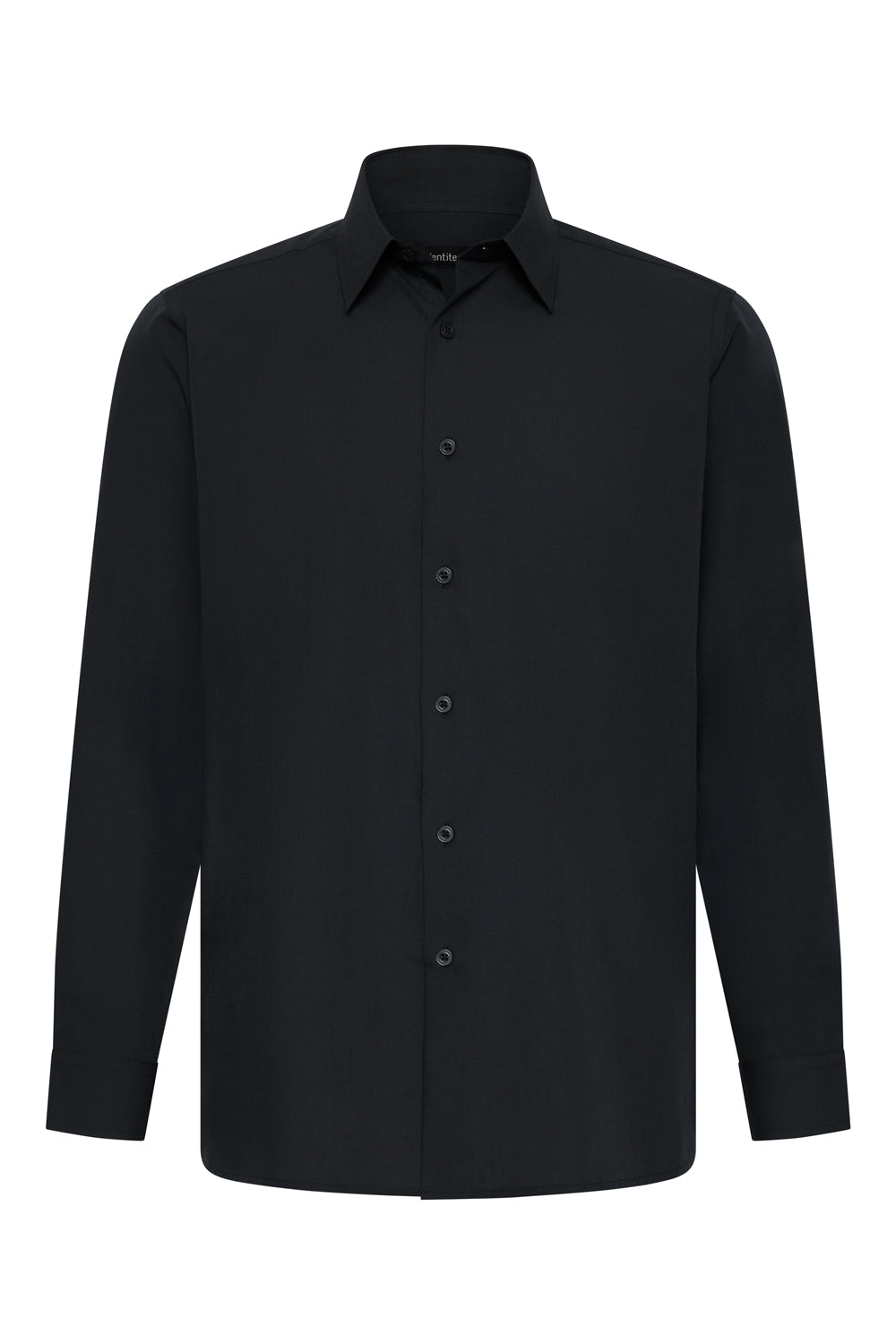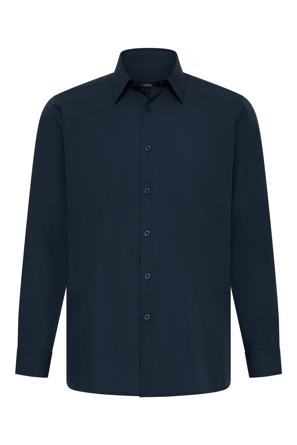 FEATURES: Plain collar, Gradual curved hem, Rounded Cuff, Buttons dyed to match
