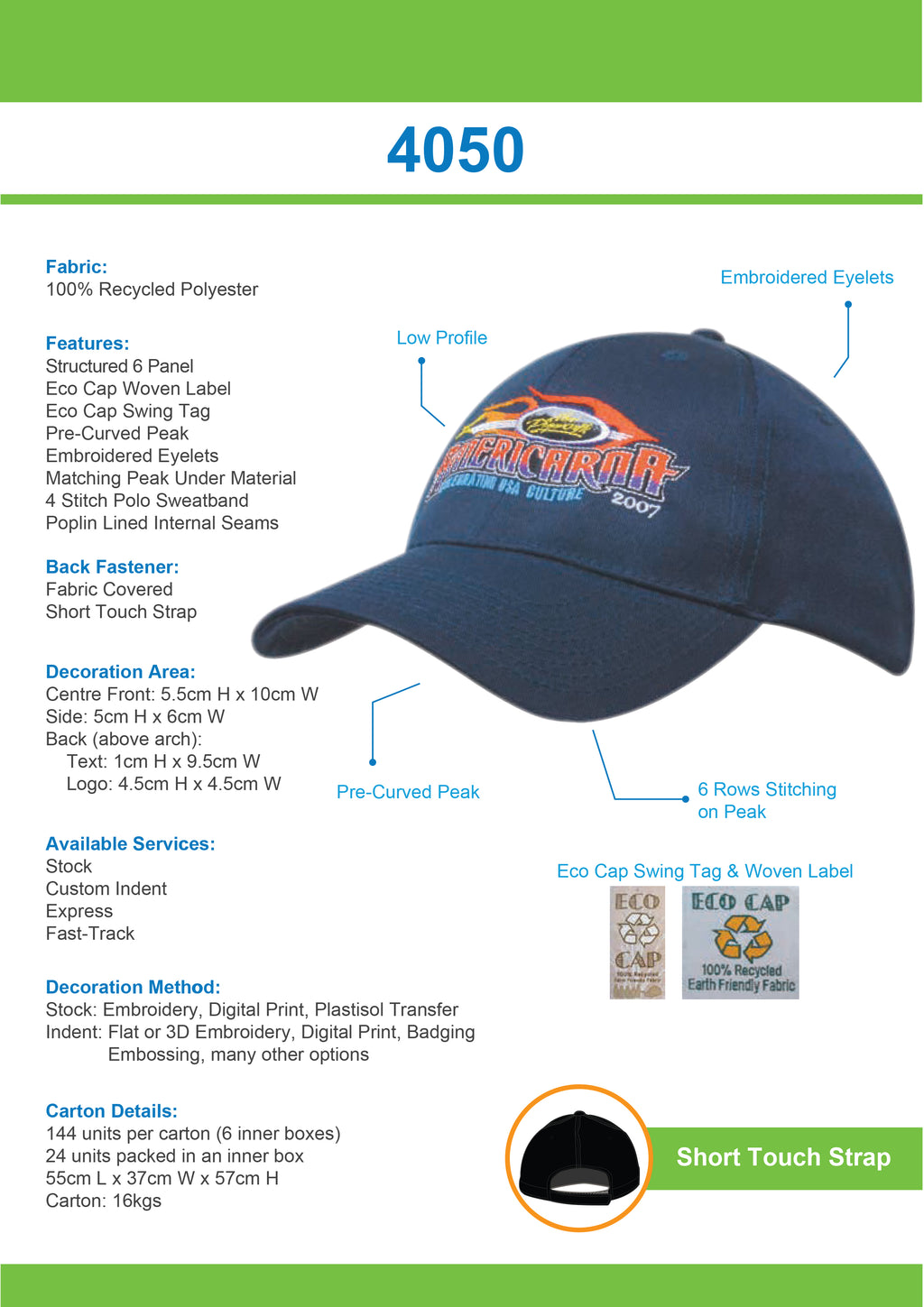 Headwear 100% Recycled Earth Friendly Fabric Cap - 4050
