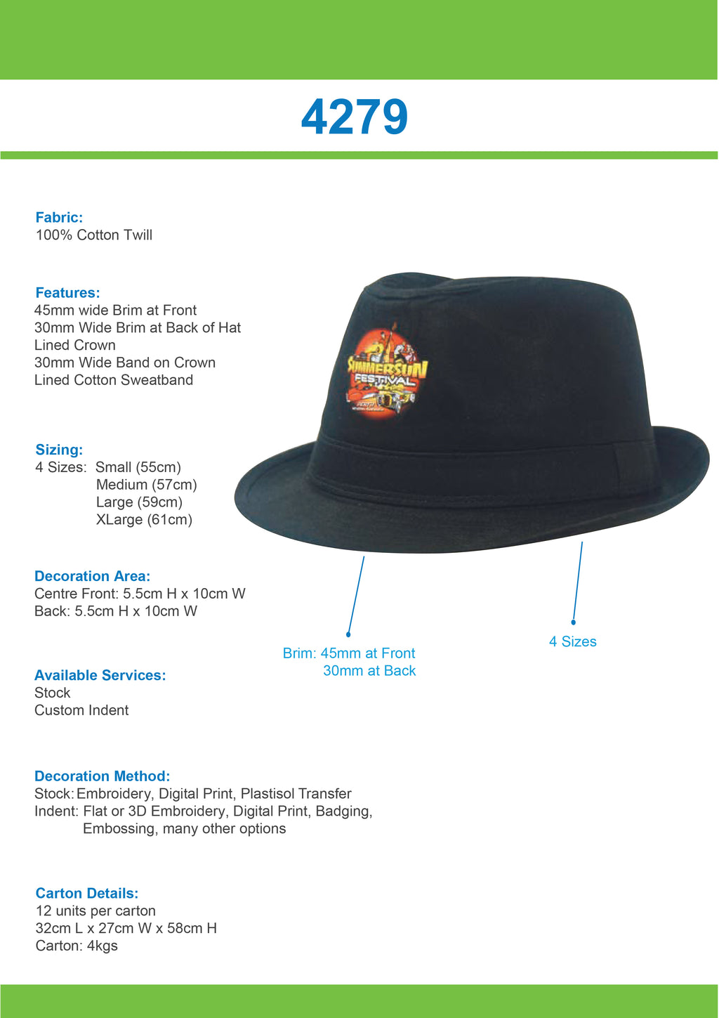 Headwear Fedora Cotton Twill Hat - 4279